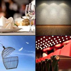 4 фото 1 слово ответы уровень 290: 1. На столе стоит тарелка с салфеткой и бокалы 2. Стена, пол. Три лампы светят сверху 3. Открытая клетка 4. Ряд сидений в кинотеатре 5 букв Правильный ответ - ПУСТО |