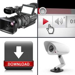4 фото 1 слово ответы уровень 300: 1. Профессиональная видеокамера 2. Кнопка "Play", на которую наведён курсор мыши 3. Значок Download и белая стрелка вниз 4. Камера наблюдения на кронштейне 5 букв Правильный ответ - ВИДЕО |