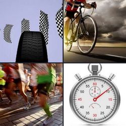 4 фото 1 слово ответы уровень 323: 1. Автомобильное колесо и клетчатые флаги, обозначающие финиш 2. Велосипед на трассе 3. Бегущие люди, бегуны 4. Секундомер 5 букв Правильный ответ - ГОНКИ |