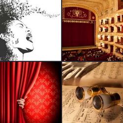 4 фото 1 слово ответы уровень 388: 1. Контур лица поющего человека, переходящий в нотки 2. Сцена большого театра 3. Рука отодвигает красную портьеру, а за ней красные обои 4. Театральный бинокль лежит на нотной книге 5 букв Правильный ответ - ОПЕРА |