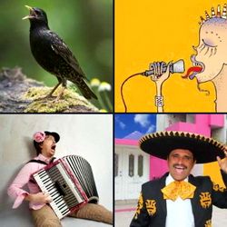 4 фото 1 слово ответы уровень 391: 1. Скворец (птица) с открытым клювом 2. Уродливый человек лижет микрофон 3. Мужик с цветком на голове рвёт баян (аккордеон) 4. Мексиканский певец в широком сомбреро 5 букв Правильный ответ - ПЕНИЕ |