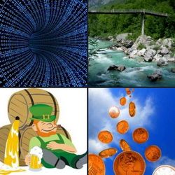 4 фото 1 слово ответы уровень 393: 1. Труба, воронка, водоворот из двоичного кода 010101 2. Мост через горную речку 3. Мужик в зелёном костюме лежит у бочки, из которой вытекает пиво 4. Монеты сыпятся с неба 5 букв Правильный ответ - ПОТОК |