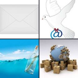 4 фото 1 слово ответы уровень 394: 1. Белый простой конверт 2. Белый голубь несёт знак @ 3. Бутылка с запиской внутри 4. Земной шар, обложенный коробками 5 букв Правильный ответ - ПОЧТА |