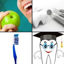 4 фото 1 слово ответы уровень 370: 1. Девушка с зелёным яблоком 2. Большой зуб и инструменты стоматолога 3. Зубная щётка 4. Зуб в академической шапочке с кисточкой 7 букв Правильный ответ - ДАНТИСТ |
