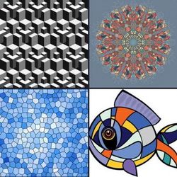 4 фото 1 слово ответы уровень 383: 1. Узор из серых кубиков разного размера 2. Цветной симметричный круг, как в детском калейдоскопе 3. Узор из синих многоугольников разных оттенков 4. Рыбка, собранная из разноцветных кусочков 7 букв Правильный ответ - МОЗАИКА |