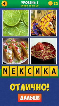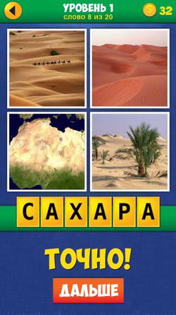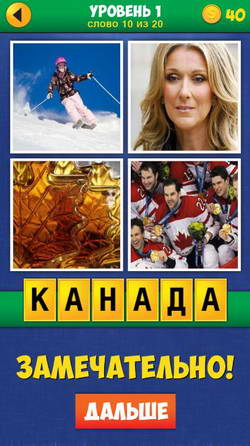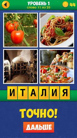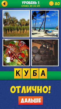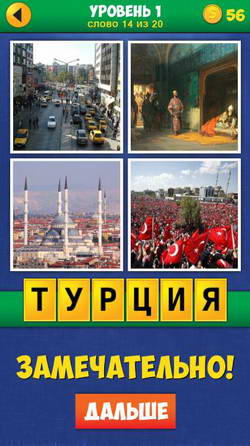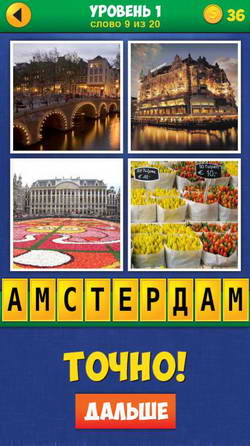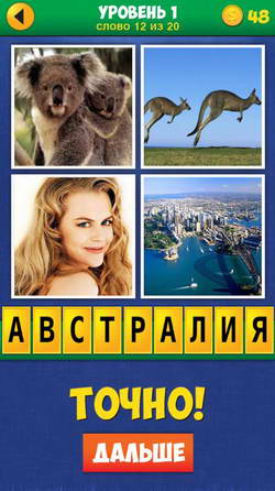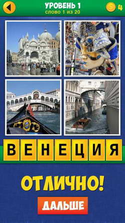 Игра 4 фото Путешествие вышла совсем недавно, а мы уже приготовили для вас ответы на весь первый уровень! Напомню, смысл этой игры 4 фото 1 слово заключается в том, чтобы по четырем картинкам найти «хитрое» слово. Оно скрывает название города, достопримечательности или же страны. В каждом уровне 20 заданий, то есть вам необходимо угадать 20 слов. Вы удивитесь, насколько поразительны и интересны разные уголки нашей планеты. И если в реальной жизни увидеть их вам мешали самые разные причины (нехватка времени, денег, постоянные бытовые проблемы), то угадывая ответы на игру 4 фото 1 слово вам придется попутешествовать по всему миру. Спасибо интернету и разработчикам 4 фото 1 слово Путешествие за такую возможность! Как я уже говорила, вам будут даны четыре изображения, связанные одним понятием. Простота (а вместе с тем и сложность) этого варианта 4 фото 1 слово состоит в том, что тип отгадки известен вам заранее – это не признак, не действие и не предмет, но название города, страны или места, побывав в котором вы сможете сделать такие снимки. Естественно, некоторые уровни головоломки будут простыми до безумия. Вам будет достаточно одного взгляда на любое фото из задания, чтобы дать ответ. Например, я так угадывала задания, связанные с Россией и Украиной, где все знакомо. Однако не думайте, что прохождение 4 фото 1 слово Путешествие можно одолеть с наскока. Уровней здесь много, да и далеко не все задания так известны как Москва с ее Кремлем или Киев с его Майданом. Если у вас возникли сложности и вы не можете подобрать правильный ответ на задание, всегда можно воспользоваться нашей шпаргалкой. В ней есть правильный ответ, подробное описание картинок и скриншот. Успехов в игре!