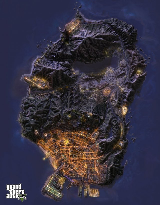 Карта мира GTA 5 со спутника даст возможность рассмотреть город Лос-Сантос и округ Блейн. На карте ГТА 5 можно рассмотреть постройки, запомнить рельеф, благодаря чему потом будет проще избрать для своего героя самую лучшую дорогу. Для интереса вы можете даже определить глубину океана на некоторых его участках.