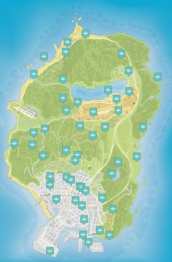 Карта не очень точная, поэтому предлагаем посмотреть видеопрохождение ГТА 5, в котором показано нахождение всех 50 обломков космического корабля.