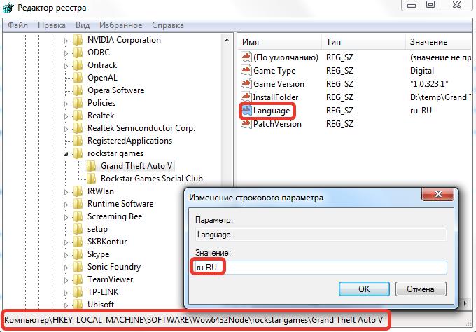 Проходим путь HKEY_LOCAL_MACHINE > SOFTWARE > Wow6342Node > Rockstar Games > Grand Theft Auto V
