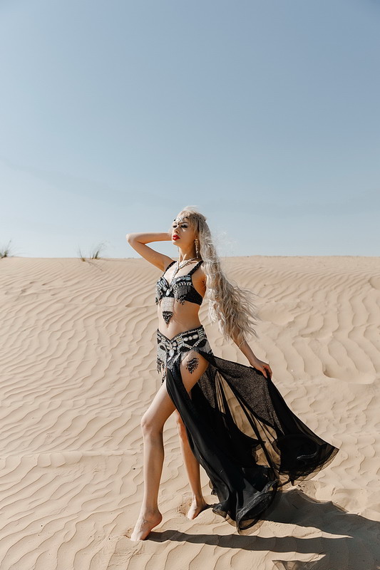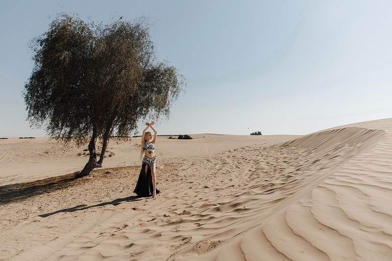 Какую же локацию выбрать для съёмки? Изящество сочетания архитектуры старого и нового города или бескрайние пески и редкую растительность на фоне восходящего или заходящего солнца? Как видите, я специально привела в пример фотографии с одной и той же моделью, которые наглядно показывают, что возможно совместить эти две такие разные локации в одну съёмку. Мы начинали в 4 часа вечера в пустыне, потратив на неё менее получаса (получилось чуть меньше 100 фото, из них 13 было обработано), затем переместились в Даунтаун, на поездку ушло около часа, и уже в половину шестого продолжили на фоне Бурж Халифы. На съёмку в центре ушло около часа, было сделано более 200 фото, из которых 13 обработано.