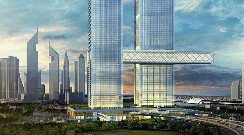 - два небоскрёба с огромной консолью, соединяющей их и сильно торчащей наружу. Его строили-строили и в конце 2023 года наконец построили. Это очередной рекорд Гиннесса как здание с самой длинной консолью. Там у них бассейны, рестораны и в целом можно посетить местечко. Одну из башен занимает отель One & Only Zaabeel, вторую - частные апартаменты.
