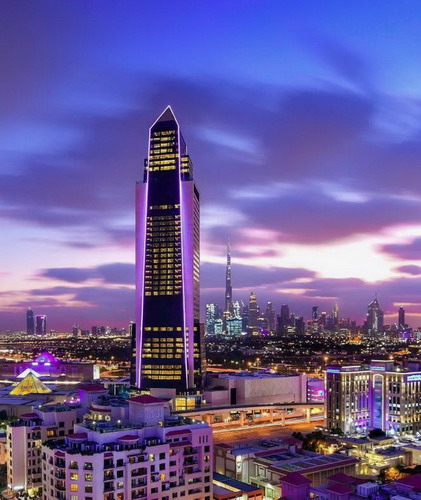 - элитный отель в Даунтауне с кораблём на верхушке. Соединён с метро прямым линком, выходя на станции Бурж Халифа просто упираешься в его призывно открытые двери. Там на верхних этажах помимо дорогих ресторанов есть ещё высотные развлечения типа стеклянной горки и лазания по стенам небоскрёба со страховкой. Жилые апартаменты здесь тоже есть, виды на Бурж Халифу присутствуют