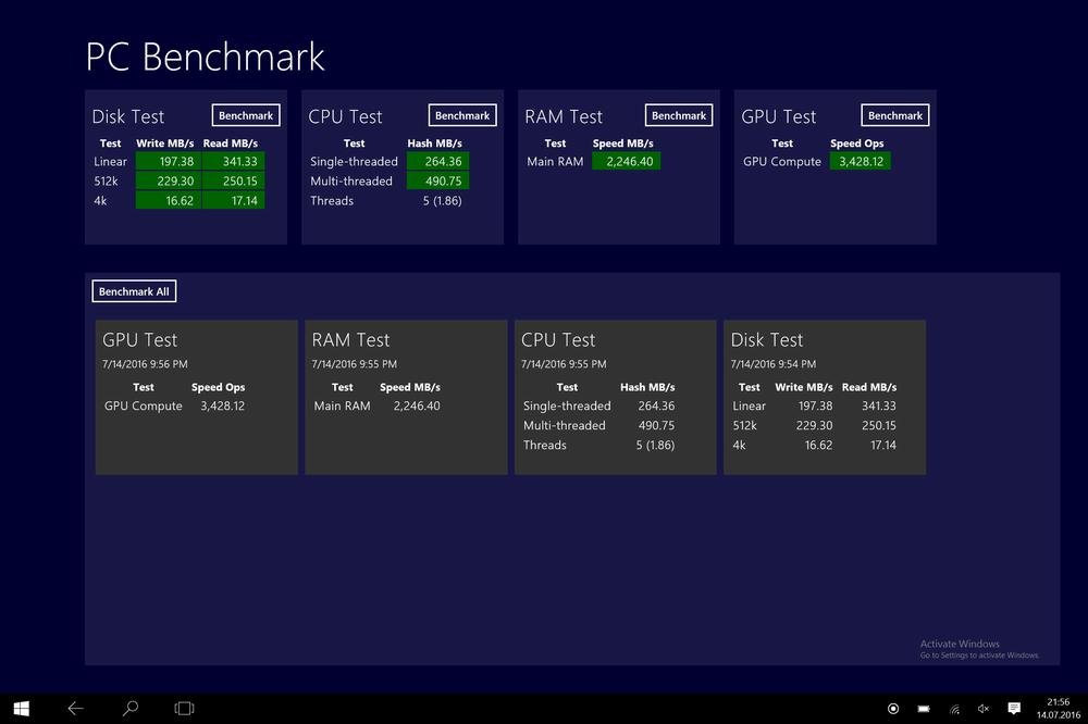 Аппаратная начинка Huawei Matebook позволяет девайсу с лёгкостью воспроизводить 4К-видео и запускать множество компьютерных игр. Например, World of Tanks: Blitz идет на устройстве с отличным фреймретом 60 кадров в секунду при максимальных настройках графики. Хотя это немного и глупо, но в Антуту Huawei Matebook выдает более 210000 баллов. На скриншотах вы можете лицезреть результаты тестов в Антуту и PC Benchmark - сравните их с результатами ваших ноутбуков. Кстати, Huawei Matebook практически не нагревается и корпус при нагрузке становится слегка теплым - что еще нужно от компактного ноутбука или планшета.
