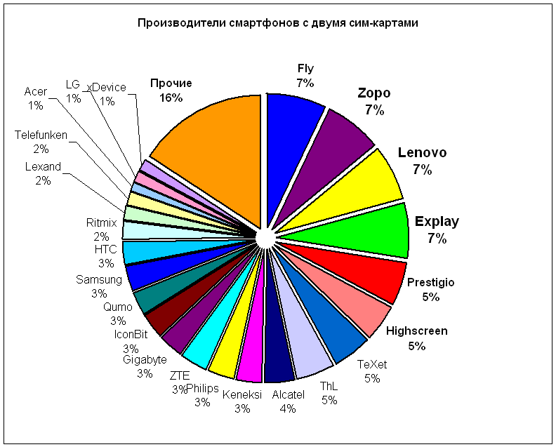 Больше всего разных моделей двухсимочных смартфонов предлагает бренд Fly. У британской компании в активе 22 разных устройства, соответствующих критериям обзора. Наличие двух сим карт для Fly вполне обычно: из 81 модели смартфона Fly 70 идут с двумя симками!