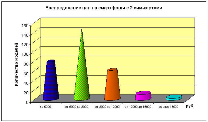 В этом году стали выпускать смартфоны с 2 сим-картами подороже. Однако, общая тенденция снижения цен на смартфоны нивелировала этот подъём: средняя стоимость двухсимочного смартфона - 6910руб. Полгода назад, когда был сделан предыдущий обзор, средний ценник достигал 7200руб.