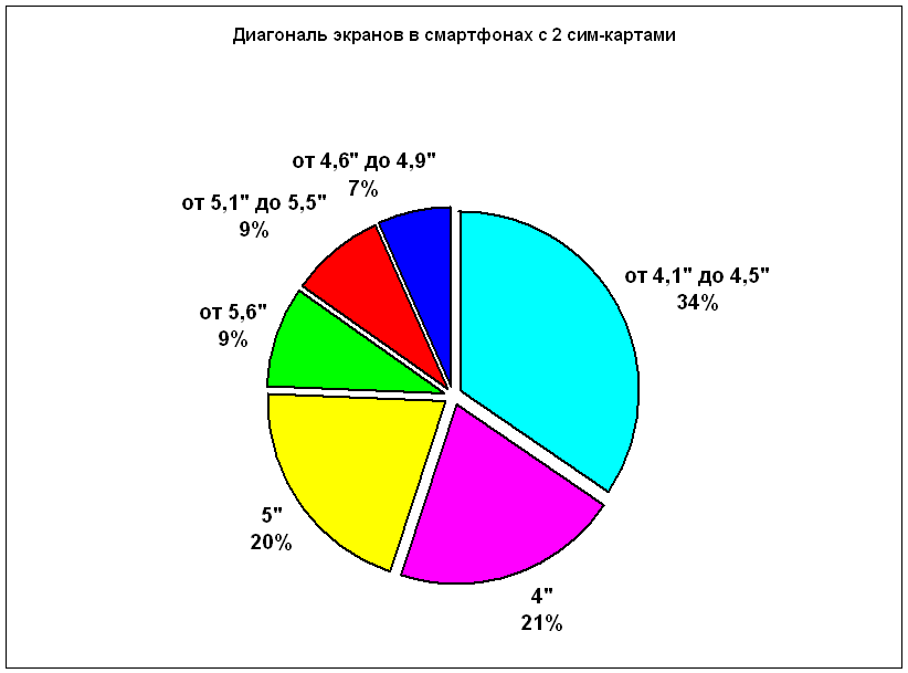 - Диагональ экранов в смартфонах с 2 сим-картами