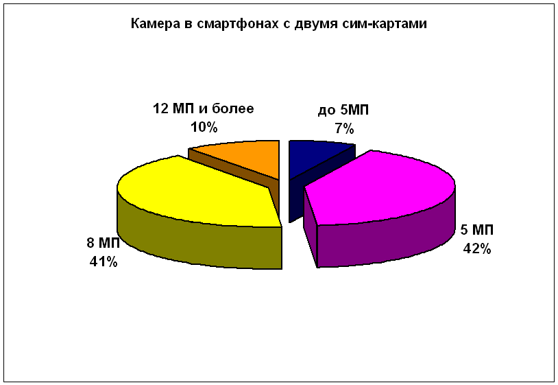 8-мегапиксельной камерой в 2013 году обладали лишь 49 смартфонов с 2 сим картами, что составляло немногим более трети обозреваемых устройств. В 2014 году колиечство смартфонов с 8МП камерой уже 125 и это 41% от всего списка. Конечно, определять качество камеры только по количеству мегапикселей не совсем правильно и поэтому предлагаем прочитать свежую статью про смартфоны с хорошей камерой, однако в рамках этого обзора можно смело утверждать, что 8-мегапиксельные камеры в целом дают более высокое качество фото и видеосъёмки по сравнению с 5-мегапиксельными.