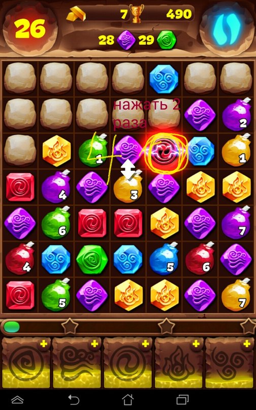 Усовершенствовать тотемы до максимума. Затем нужно стараться создать бонус, который вниз бьёт. Тотем воды использовать так, чтобы сразу 2 бомбы сбить. Остальное получится само собой