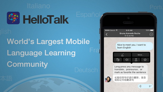 HelloTalk - программа для практики иностранного языка на смартфоне. Аналог Tandem'a, имеет схожий функционал, тоже направлена на практику языка с носителями посредством общения через Интернет.