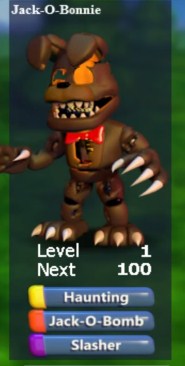 Jack-o-Bonie - мощный, атакующий аниматроник. Имеет способность Slasher, которая сносит по 200 ХР сопернику.